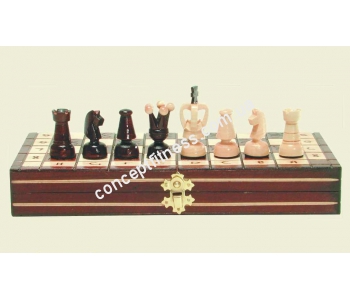 Шахи Madon138 Korolevskie small створені для дорожніх подорожей, компактного розміру, можна брати з собою в турпоходи, відпочинок і курорти. Розмір шахівниці по довжині 28,5 см, а товщина 5 см, вага набору 0,5 кг. Модель виготовлені з міцного, якісного, благородного дерева, вони розвивають логіку, мислення, виробляє посидючість і витримку. Набір польського виробництва, виготовлений руками, різьблення, гра багатьох поколінь, підходить в будь-якому віці, шахи завжди будуть принципом благородства, високого інтелект. Шахи можна подарувати коханій людині, друга і начальнику, від такого подарунка все будуть в захваті. Шахові фігурки щільно сидять в руці, чудово лягають в долоньку гравцеві, притискаючись щільно до поверхні шахівниці. Фігурки, в кількості 32 шт., Лаковані, відшліфовані, щільно притискаються до дошки, висота фігурки 60 мм.