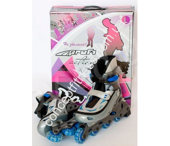 Роликові ковзани Profi PW-122-А розсувного типу, можна регулювати самому, виходячи з умінь і рівнів майстерності дитини. Передбачена кнопкова система регулювання, одночасно на кілька розмірів. Фіксація черевика відбувається шляхом шнурівки, кліпси і п'яткової стрічки, черевик не злітає і міцно тримається на стопі під час різних трюків. Для безшумної їзди, передбачені спеціальні підшипники 608Z. Пошиті черевики з міцною та еластичною синтетичної шкіри, комфортно і зручно огортають ногу спортсмена, носок з термопластика, представлені в яскравих тонах. Ковзани відмінний варіант для активного способу відпочинку, відрізняється високою якістю і дизайном, маневрені, прості в управлінні. Модель дитячого призначення подарує малюкам хвилини радості від їзди на роликах на стадіоні або вулицях. Ролики виділяються наявністю рами з надійного, якісного, легкого і надійного алюмінію, на якій встановлено 4 поліуретанові колеса, розміром 72х24 мм, жорсткістю 82А.