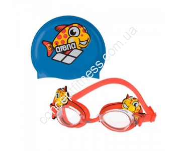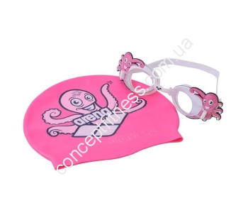 В окулярах передбачений ущільнювач, щоб нівелювати пропускання води і запотівання очей. Довжину ремінця можна відрегулювати, при натяжки за бічні ремінці. Морські тварини на шапочці порадують малюків, перетворять плавання в веселу гру.