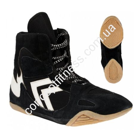 Борцовки представлені в чорному кольорі, в наявності різні розміри, під замовлення. Підошва зовсім не змінна, боєць твердо буде триматися на ногах, приносячи довгоочікувану перемогу своїй команді. Фіксуються черевики завдяки міцним і щільним шнуркам.