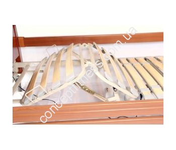 Гнучкі дерев'яні ламелі в ложі забезпечують додаткову м'якість. Пульт управління змінює кут нахилу головної і ножної секцій в залежності від потреб користувача: забезпечує підвищений комфорт в процесі реабілітації і полегшує догляд з боку асистента. Електричне регулювання ліжка дозволяє змінювати відстань від підлоги до ложа, що дає можливість користувачеві легше вставати, лягати і пересідати. Ножна секція при підйомі приймає паралельне підлозі положення. Регулювання висоти поручнів полегшує доступ до пацієнта і забезпечує додатковий захист. Колеса дозволяють переміщати ліжко в приміщенні, гальма фіксують ліжко на місці. При відключенні електроенергії передбачена функція повернення ліжка в початкове положення.