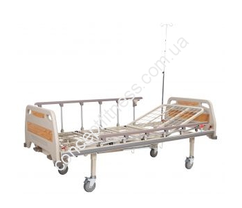 Ложе ліжка розділене на чотири секції: кут нахилу головної і ножної секцій регулюється за допомогою механічних важелів. Рама ліжка виготовлена зі сталі, що гарантує її надміцність, надійність і стійкість до підвищеного навантаження до 200 кг. Передбачена можливість закріплювати в рамі штатив під крапельницю. Складні поручні з металу і пластика забезпечують швидкий доступ до пацієнта і його додатковий захист. Спинки ліжка при необхідності швидко знімаються. П'ятидюймовий колеса дозволяють швидко переміщати ліжко в приміщенні, а гальма - фіксувати на місці.