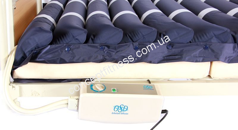Секційний матрац з компресором, від виробника OSD, модифікації OSD-516K забезпечить профілактику і лікування складно гояться ран після пролежнів. Матрацні балони швидко замінюються, присутній циркуляційні процес між секціями. Модель виготовлена з якісного і міцного ПВХ, в формі безлічі секцій, висота кожної 12,7 см. Матрац створений для профілактики і загоєння пролежнів, застосовують не тільки в лікарнях, але і вдома. Модель підключена до електромережі, характеризується наявністю змінного тиску, становить від 30 до 90 мм, цикл роботи можна змінити після 6 хвилин роботи. Секційний матрац з компресором OSD-516K, від бренду ОСД витримує навантаження користувача до 150 кг, а загальна маса комплекту складає 8 кг, передбачений захист від замиканій.