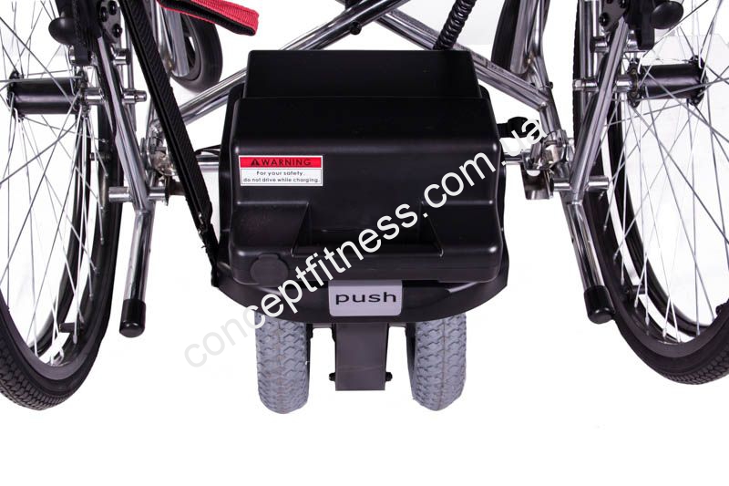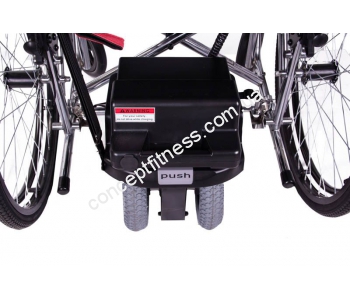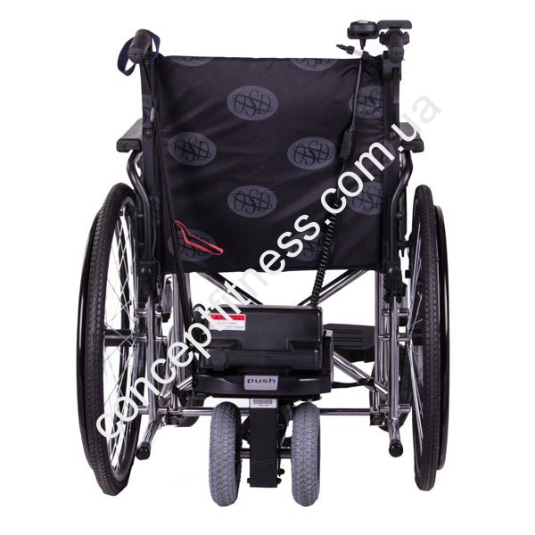 Електромотор для механічної інвалідного візка, від виробника OSD, OSD-Power Glide універсального призначення, вагою 19,2 кг, витримує навантаження 135 кг, представлений в чорному кольорі. Модель приводитися в управління завдяки пульту дистанційного керування, він вибирає напрямок руху і загальну швидкість їзди, потужність мотора 150 Ватт, дальність їзди до 16 км, а максимальна швидкість 6,5 км /год. Електромотор для механічної інвалідного візка, від бренду ОСД, модифікація OSD-Power Glide допоможе асистентові на належному рівні доглядати за хворим пацієнтом. Стійкість забезпечать подвійні колеса, мотор легко монтується, не перешкоджає маневреності коляскі.