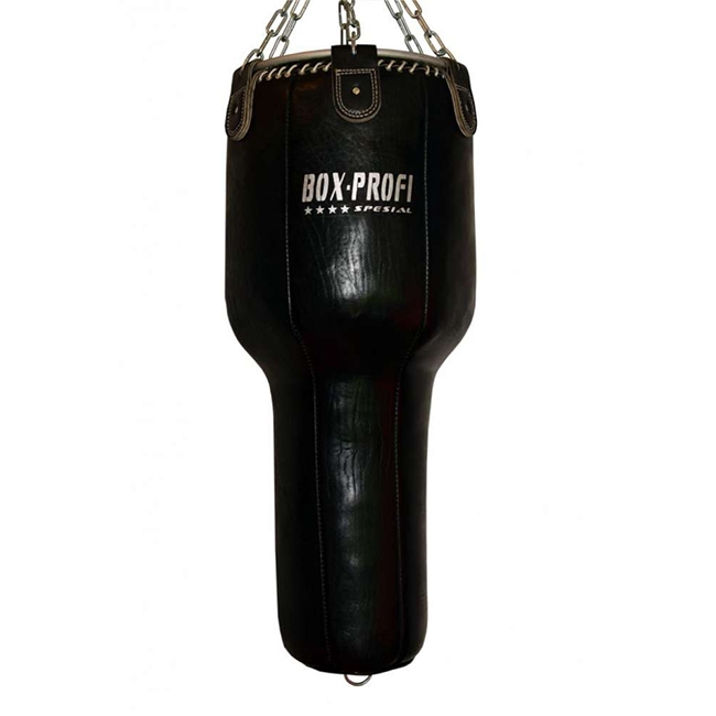Мішок для аперкоту БоксПрофі 110х50 створений при обліку всіх стандартів європейського типу і з застосуванням нових технологій. Його розміри і форма дозволяють відпрацьовувати різноманітні види ударів. За рахунок міцного листа шкіри, з якого і створено сам мішок, він придбав стійкість перед зносом.