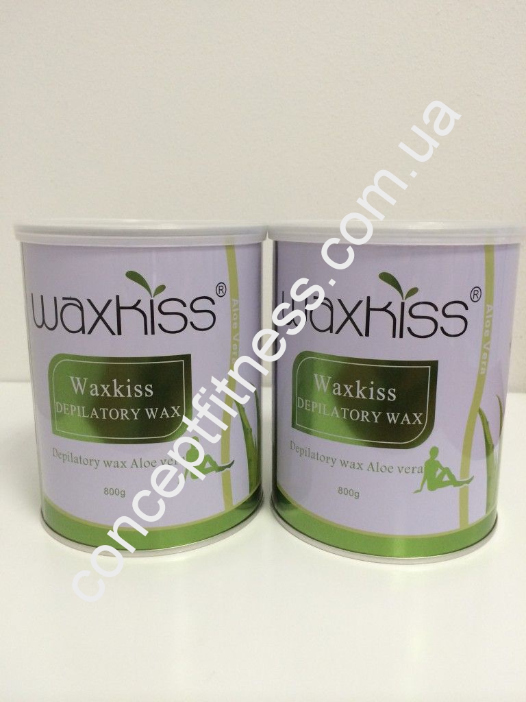 Теплий віск Алое в банку, від виробника Waxkiss, масою 800 грам підходить ніжною і чутливій шкірі, ідеальний варіант для депіляції інтимних зон. При депіляції застосовують паперові або тканинні смужки різної ширини, відривати різкими рухами проти росту волосся. Депіляцію із застосуванням теплого воску слід проводити під наглядом професіоналів косметологічних салонів і салонів краси.