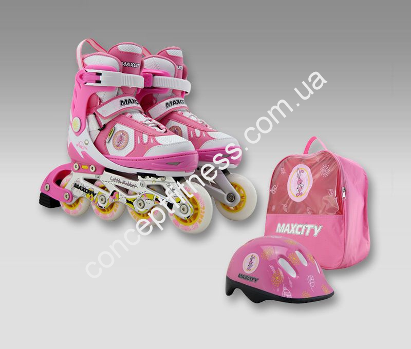 Роликові ковзани відомого бренду МаксСіті модель Little Rabbit Combo створені не тільки для прогулянок, а й для заняття фітнесом, підтримки фізичної форми. Ролики представлені одночасно в декількох кольорах, черевики пошиті з щільного, якісного матеріалу, система фіксації представлена у вигляді шнурівки, застібки, за технологією Max Fit.