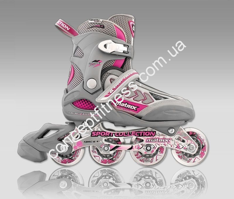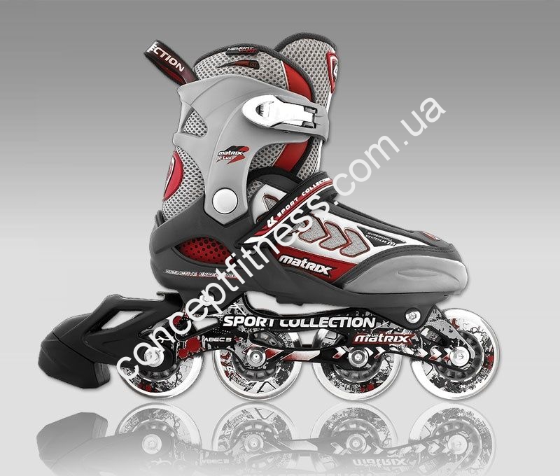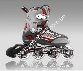 Роликові ковзани CK Matrix DeLuxe виділяються наявністю сучасної вентиляційної системи з дихаючих матеріалів і металевої сітки. За плавність їзди відповідають хромовані підшипники типу ABEC 5 Mach, а регулювання розмірів відбувається завдяки розсувному механізму PushPull. Модель роликів відносять до спортивної колекції, що дозволяє не тільки відпочивати, але і займатися фітнесом. Колеса однорядні, виконані з Hyper PU, розміром 7 см.