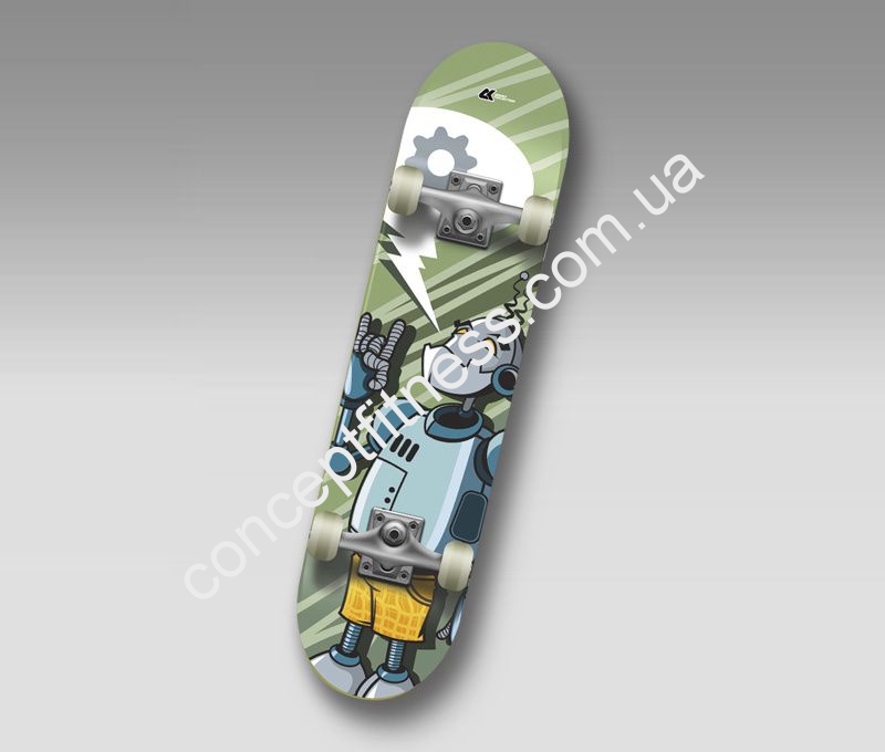 Скейтборд CK Bot користується великою популярністю серед любителів екстремальної їзди. Кілька мільйонів жителів по всій планеті, він допомагає підвищити майстерність, промчати по міських вулицях. Модифікація скейтборду може витримати загальне навантаження 100 кг, маневрена. Скейтборд складається з міцної та якісної деки, виготовленої з 100% канадського клена, дека 9-ти шарова, розмірами 31х7,75rdquo; .
