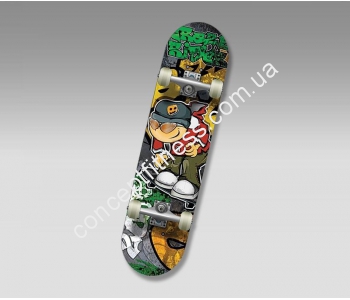 Скейтборд CK Рідер проведений з натуральних і міцних матеріалів, в очі відразу впадає унікальне зображення, нанесене шелкографией. Маневреність моделі, краса і стиль не залишать байдужим будь-якого користувача. На скейті встановлені хромовані підшипники типу ABEC 1, а м'які, 50 мм колеса 90 А здатні забезпечити необхідну плавність ходу без ривків.
