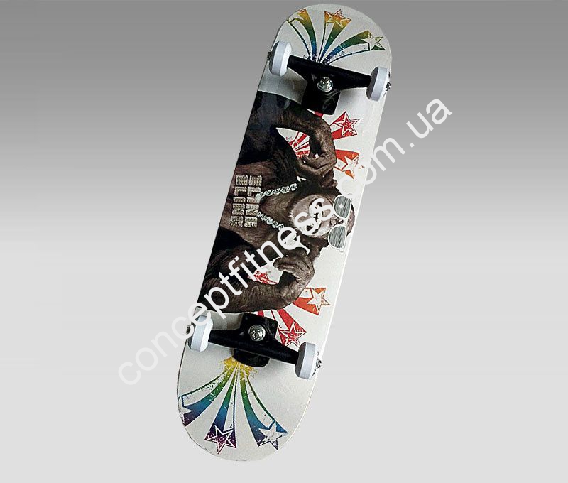 Скейтборд MaxCity King Kong виготовлений в Гонконзі, спеціально для діточок, під наглядом фахівців заводу, модель часто використовують для виконання різних трюків, екстремальної їзди та прогулянок. Скейт витримує вагу до 50 кг, дека багатослівна, з 100% натурального китайського клена. Модель оснащена надійною, алюмінієвої, 5-ти дюймової підвіскою стандартного типу, добре тримає трасу, доповнює витончений стиль барвисте зображення.