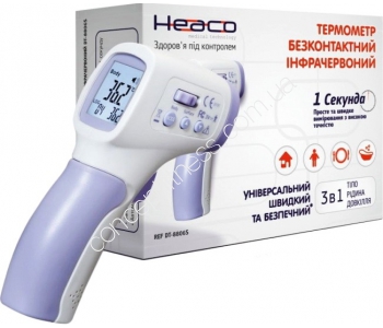 Універсальним сучасним термометром HEACO DT-8806S можуть скористатися абсолютно всі члени сім'ї, як дорослі, так і маленькі діти. Швидко і точно виміряти температуру не тільки тіла, а й повітря в приміщенні Вам допоможе інфрачервоний термометр HEACO DT-8806S. Головною перевагою є чудова можливість виміряти температуру, не торкаючись тіла людини, так як процес вимірювання здійснюється за допомогою інфрачервоного променя. На вбудованому рідкокристалічному дисплеї термометра, буквально за частку секунди, Ви побачите абсолютно точний результат. Завдяки звуковому сигналу користувач дізнається про закінчення процесу вимірювання. Працює HEACO DT-8806S від досить потужною батарейки типу quot; Крoнаquot; в 9В.