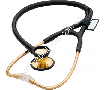 Кардіологічний стетофонендоскоп Classic Cardiology Gold 797K покритий золотом в 21 карат. Трубки представлені в чорному кольорі, стандартної довжини, виконані з міцного ПВХ. Стетоскоп забезпечує якісну і точну аускультацію пульсового ритму у дітей, роботи дихальних органів і серця, особливо тон Короткова.