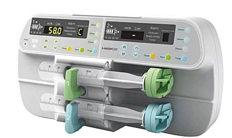 Шприцевий дозатор двоканальний Хеако SNshy; 50F66 автоматично визначить обсяг шприца, дозатор користується попитом в педіатрії, анестезіології, а також реанімаційної практиці, одним словом, у всіх випадках, де потрібна мінімальна дозування препаратов.