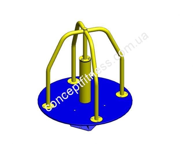 Карусель мала Vadzaari 009 нагадує форму кола, нагорі знаходяться 2 арки, з'єднані між собою, діаметром 1 м, а заввишки 1,16 м, а м'якості і плавності надають підшипники. Під час катання на каруселі необхідно міцно тримаються за сталеві ручки, щоб не впасти. Модель представлена в жовто-синьому кольорі, розміщується на ігрових майданчиках садках, дачах, заміських будинках, дитячих таборах і пансіонатах.