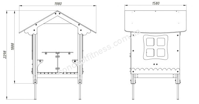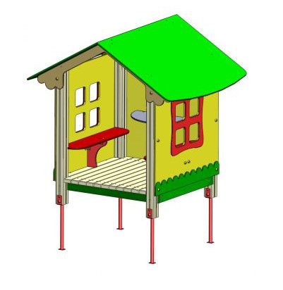 Альтанка Vadzaari 603 виділяється двосхилим дахом, просторими і широкими вікнами, пофарбована в кілька кольорів. Встановлено 2 лавочки, які витримують до 6-ти малюків одночасно, для кращої фіксації необхідно вкопати в землю або забетонувати.