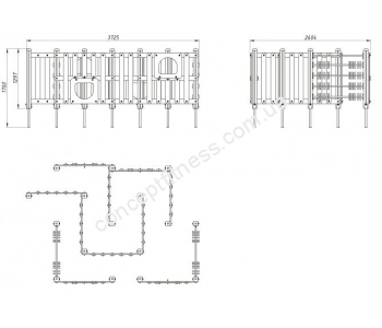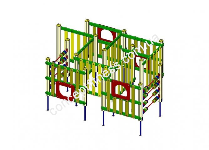 Ігровий комплекс Лабіринт Vadzaari 023 виконаний з якісного і натурального дерев'яного масиву, ніжки металеві, для кращої фіксації необхідно забетонувати або вкопати. Модель розвиває логіку, швидкість мислення, координацію, зміцнює імунітет, робить прогулянки на свіжому повітрі корисними, підходить діткам від 3-х до 6-ти років, встановлюється в дитячих садках, дворах, дачах і пансіонатах.