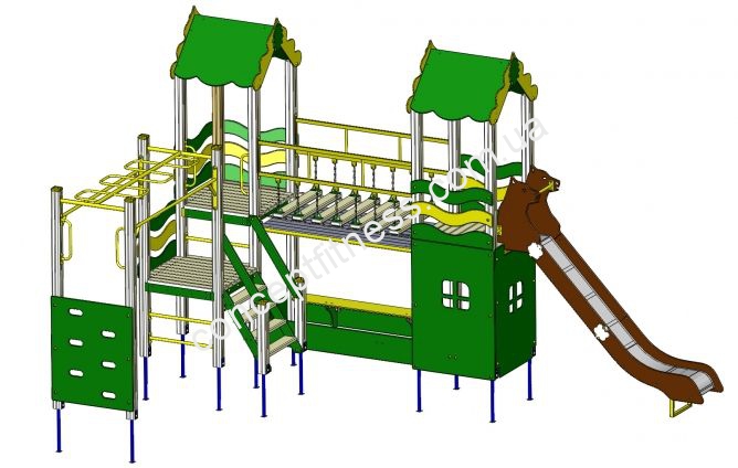 Ігровий комплекс Сосновий Бор Vadzaari 2002 зміцнює імунітет, розвиває витривалість і координацію, створений для діток від 6-ти років. У виробництві комплексу брали участь виключно натуральні матеріали з дерева і стали, щоб уникнути перекидання, модель бетонують або вкопують у землю.