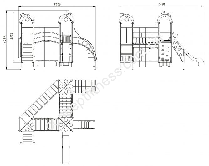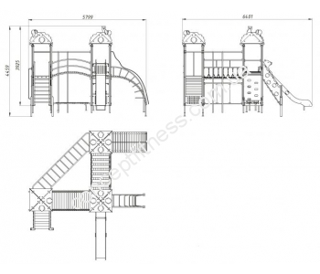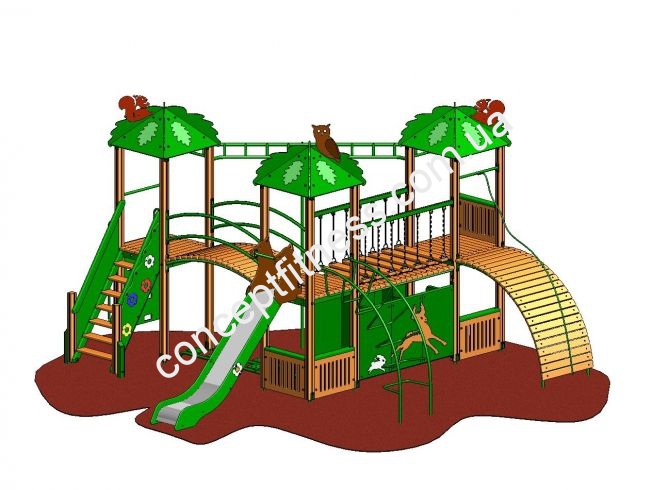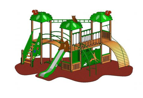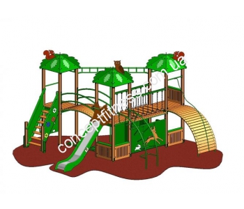 Ігровий комплекс Лісовий Vadzaari 2003 зі лісовими звірами на верху дахів, припаде до душі багатьом дітлахам, що складається з гірки, трапа з поручнями, дерев'яного містка, доріжки з колод, зігнутої металевої та дерев'яної гірки. Модель коричнево-зеленого кольору, виконана з натурального дерева і сталевого сплаву, гірка довжиною 1,5 метра.