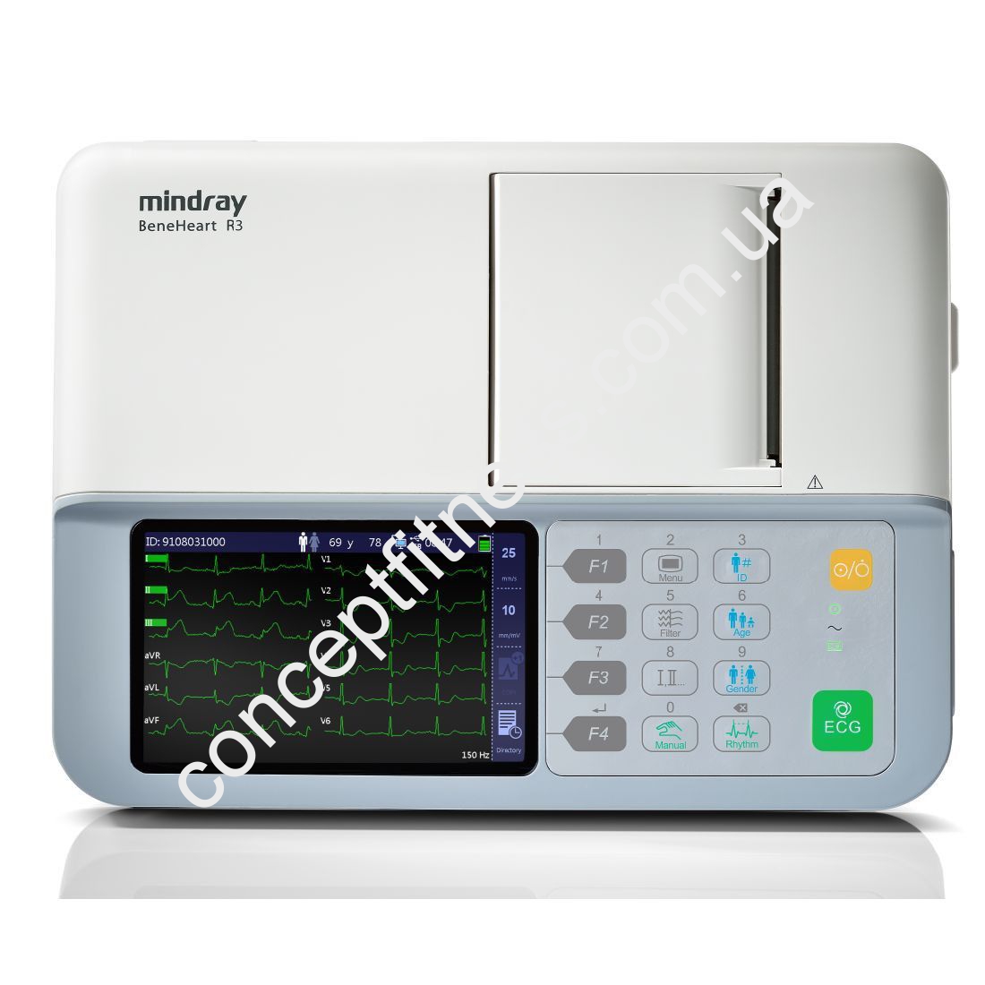 Електрокардіограф Mindray BeneHeart R3 має три каналами, з можливістю синхронно записувати до 12-ти каналів в авторежимі. Модель виділяється вбудованим термопринтером, виводить достовірний аналіз, користується великим попитом серед багатьох пацієнтів і власників клінік. Довжина приладу 26 см, для перенесення передбачена сумочка, а завдяки кабелю існує можливість підключення до ПК.