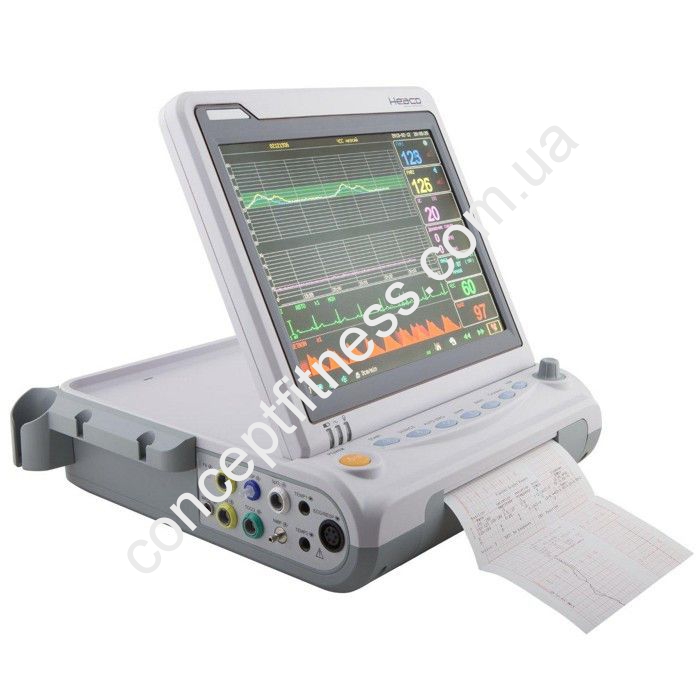 Фетальний монітор G6B + Heaco з контролем матері оснащений 12 дюймовим дисплеєм, прилад заряджається протягом 8 годин, працює від електромережі і 12В акумулятора не більше 2-х годин. Прилад фіксує тонус матки, записує події, виводячи результати через термопринтер.
