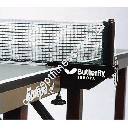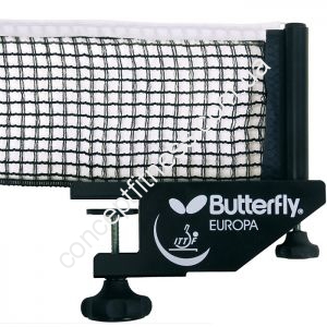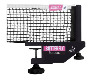 Сітка професійна Butterfly Europa виконана з натурального і міцного бавовни, витримує потужні удари під час ігор і тренувань. Рівень висота сітки, а також загальне натяг легко піддаються регулюванню, після ігор необхідно послаблювати натяг, що дозволить значно продовжити термін експлуатації моделі. Відмінний варіант по співвідношенню ціни і якості, зручна в експлуатації, перевірена і схвалена міжнародною асоціацією тенісу. Сітка професійна Батерфляй Europa представлена в чорному кольорі, виділяється наявністю великих затискачів. Модель створена для щоденних тренувань і проведення відповідальних тенісних матчів. Сітка користується величезним попитом серед гравців, використовується під час проведення турнірів різного класса.