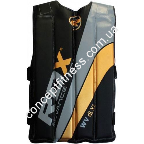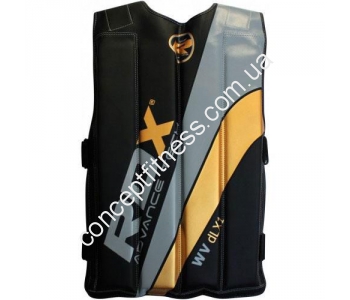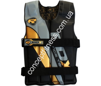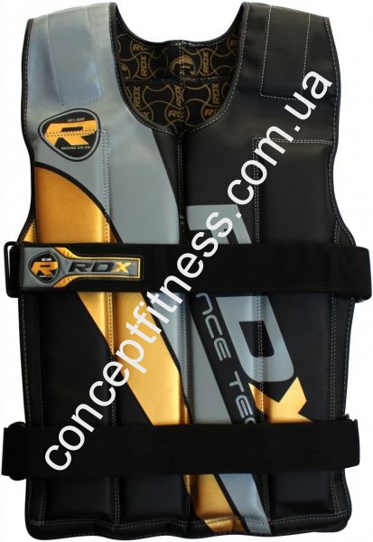 Жилет утяжелітельную RDX Gold допомагають в кілька разів збільшити ефективність від тренувань, зміцнити м'язи і суглоби, підняти загальний тонус організму, збільшити витривалість, а щільність притискання жилета регулюється універсальними ременями. Загальна вага тренажера можна відрегулювати від 8 до 14 кг, модель відносять до елітного ряду, відповідає вимогам боксерів і міжнародним нормам.