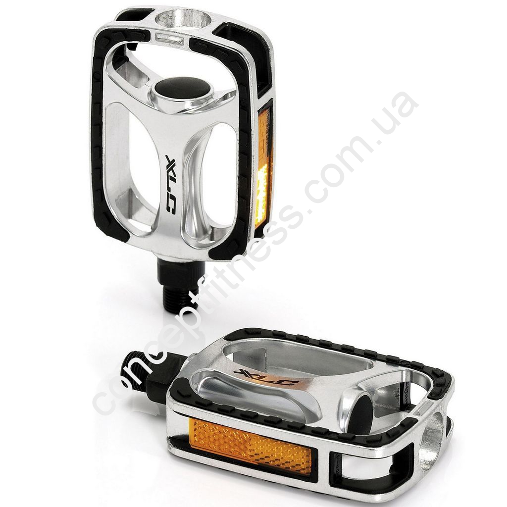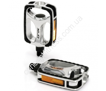 Педалі XLC PD-С03 виконані в чорно-сріблястому кольорі, вони надають комфорту і впевненості, під час їзди на мотоциклі, використовуються в міському циклі і за містом, особливо при туризмі. На корпус педалей нанесений логотип відомого спортивного бренду, а збоку встановлені помаранчеві відбивачі з метою безпеки.