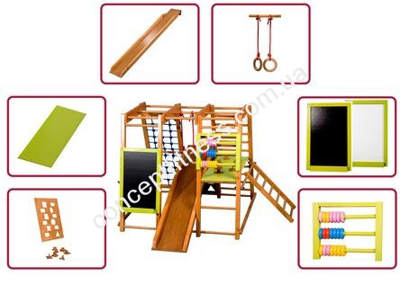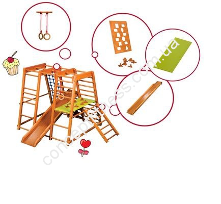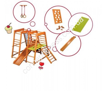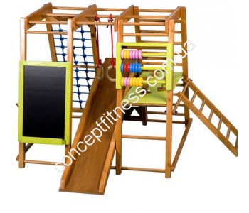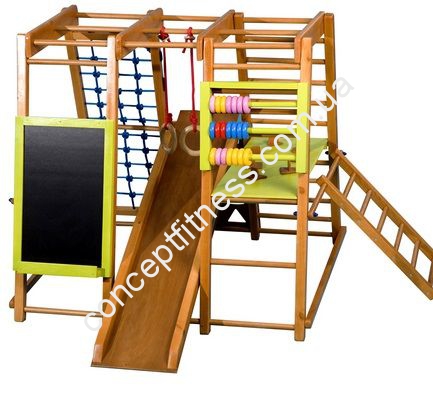 Дитячий спортивний комплекс для квартири Карамелька Sportbaby укомплектований всім необхідним для непосид, а саме шведською стінкою, сіткою гладіатора, міцним рукоходом, гіркою для крутого спуску, столиком, кільцями, рахунками для юних математиків, дошкою мольберт і гойдалками-млинцем. Комплекс розвиває у дітей логіку, швидкість, витривалість, спритність, а також зміцнить їх імунітет і підніме тонус.