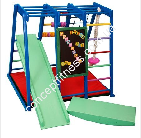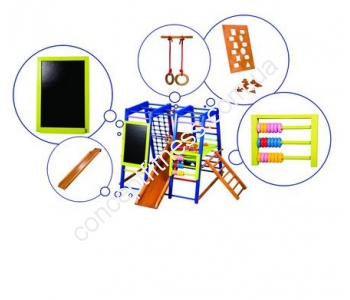 Спортивний комплекс акварельку Спортбебі комплектується широкої, міцної шведською стінкою, якісним рукоходом, блін-гойдалкою, столом, а також гіркою для крутого спуску, загальною довжиною 1,5 м. Комплекс витримує загальне навантаження в 40 кг, висота моделі 1,2 м, термін гарантії 12 місяців. Модель підійде діткам від 6-ти місяців до 7-ми років, а багатофункціональність не залишить дітей равнодушнимі.