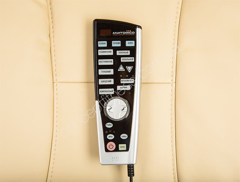 Масажне крісло Anatomico Marco бездоганно бореться з набряками, знімає втому, в рази покращує звернення крові, а також призводить організм в хороший тонус. Передбачено 4 автоматичних масажних програм, після вибору включайте музику і насолоджуйтесь божественної релаксацією.