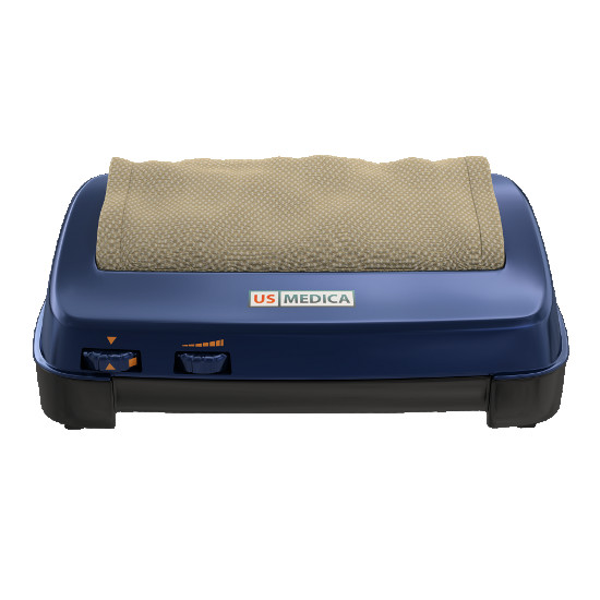 Масажер для стоп US Medica Omega допоможе зняти втому зі стоп, ніг, отриманих протягом усього робочого дня. Вага моделі 1,8 кг, виконаний в чорно-синьому кольорі, бореться з варикозним розширенням вен, лікує плоскостопість, а невеликі габарити дозволяє завжди носити його з собою. Масажер вельми актуальний для жінок з подіуму, і інших шанувальників найвищих каблучків.