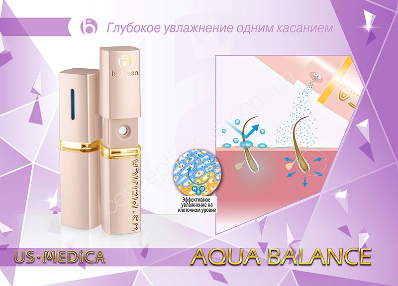 Ультразвуковий зволожувач US Medica Aqua Balance перспективна розробка відомого концерну, він добре зволожує і заспокоює шкіру, підтримуючи необхідний рівень водного балансу. Зволожувач здатний розщеплювати воду до 0,9 мкм, що дозволяє глибоко проникнути в нижній шар шкірного покриву, поетапно зволожуючи її. Водна ємність захищена з усіх боків від протікань.