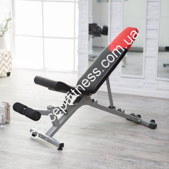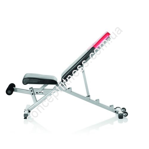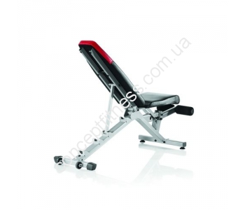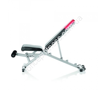 Лава Bowflex 4.1 Bench допомагає прокачувати м'язи преса, спини, попереку і ніг, шийного відділу. Модель виконана з якісного, міцного і надійного сталевого сплаву, коригує поставу, а м'яка спинка допомагає досягти комфортного виконання вправ і домогтися успішних результатів, на якій нанесено логотип відомого бренду. Лава Bowflex 4.1 Bench представлена в чорному кольорі, оснащена м'якими валиками, обтягнуті шкірзамінником, довжина моделі 1,4 метра, може нахилятися від 30 до 90 градусів, кут змінюється в 5 різних положеннях. Модель створена для гантелей, гирею, штанг, найпоширеніша модель серед новачків і професіоналів.