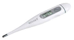 Електронний термометр Медісана Ecomed TM-62E створений для визначення температурного режиму тіла безліччю способів, від традиційного методу під пахвою, а також засунувши в рот або задній прохід. Після закінчення вимірювань звучить гучний звуковий звук, який сигналізує про завершення даної процедури. Вага моделі 33 грам, діапазон температурних вимірювань від 32 до 42,9 градусів, працює від батарейок, в наявності всі необхідні сертифікати якості та соответствія.