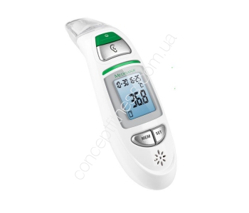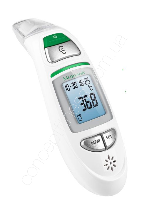 Інфрачервоний термометр Medisana TM 750 супроводжує зміни в температурному режимі потужним, акустичним сигналом. Корпус моделі вологозахисний, діапазон температур коливається від 34 до 43 градусів, працює на кількох батарейках. Готові температурні показники виводяться через 1-2 секунди, температура вимірюється через область вуха і чола. Дана модель термометра здатна виміряти також температуру води, молока, супів, включаючи температуру кімнати і будь-яких поверхонь.