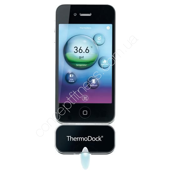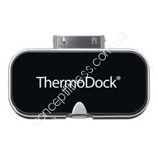 Модуль-інфрачервоний термометр Medisana ThermoDock чорного кольору, працює на відстані до 5 см, вимірює температуру в діапазоні 24-42 градусів. Всі дослідження температури зберігаються у вигляді графіків і потім передаються на мобільні пристрої, все необхідне програмне забезпечення доступне до скачування в безкоштовному режимі.