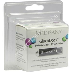 Тестові смужки для глюкометра Медісана GlucoDock є незамінним аксесуаром для повсюдної роботи з метою визначення рівня цукру в крові, працюють в парі універсальним глюкометром. Модель вельми легка, практична і доступна будь-якого користувача, застосовується в професійній і домашній сфері, виключно для зовнішнього іспользованія.