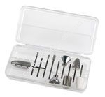 Електроприлад Медісана Манілюкс L сірого кольору, в наявності 9 різних насадок, вони покриті сапфірним напиленням, а також полірувальний круг для кращої шліфування нігтів. Широко використовується жінкам під час відпочинку на різних курортах, домашніх умовах, а вага в 150 грам сприяє легкої транспортуванні в сумочке.