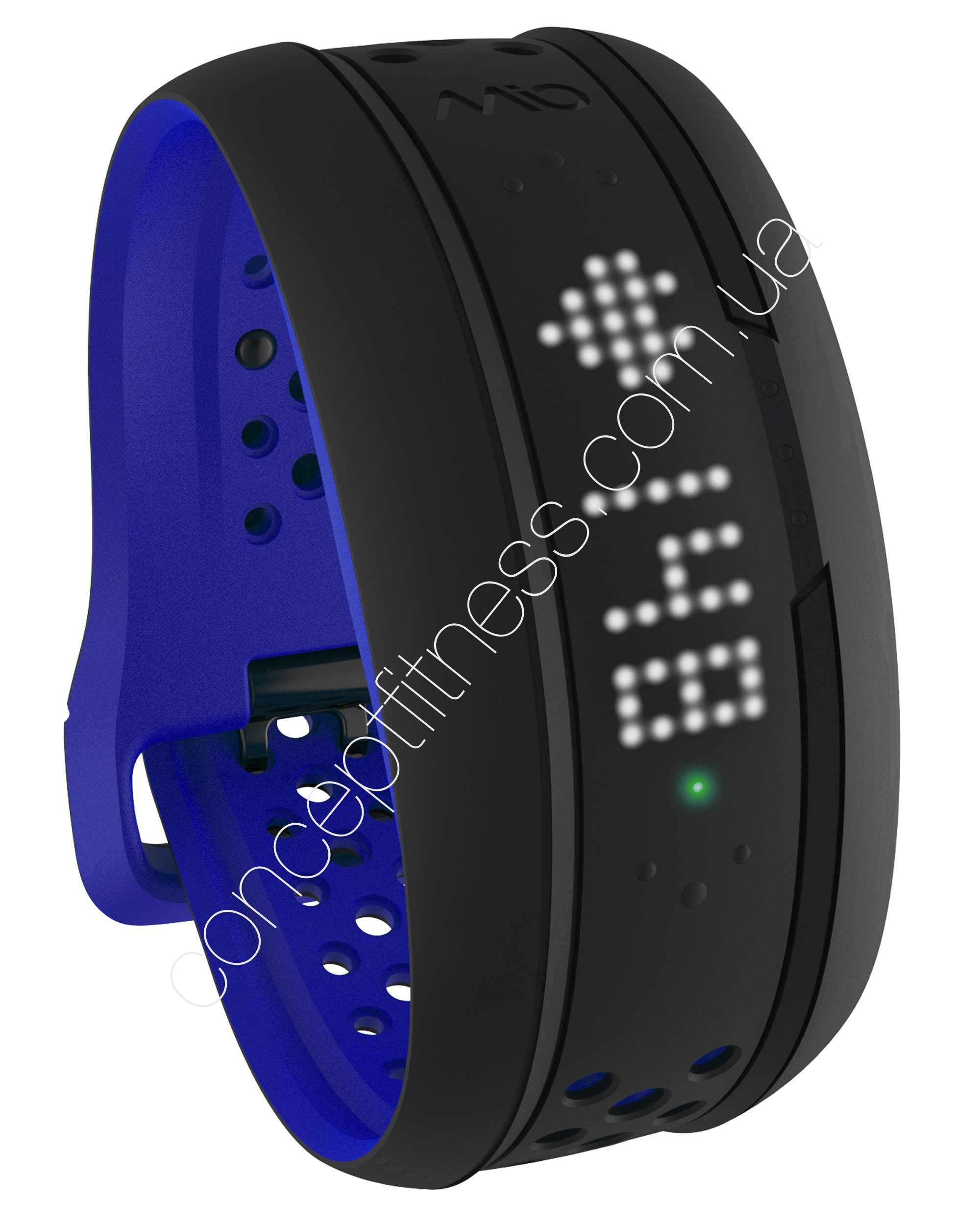 Фітнес-браслет MiO Fuse Blue є багатофункціональний пристрій, здатне визначити точну кількість кроків, пройдену дистанцію, темп, швидкість руху спортсмена, кількість спалених калорій. Модель браслета ідеально контролює стан тіла під час сну, вага близько 220 грам, а водонепроникність глибиною до 30 м дозволяє займатися дайвінгом. Екран браслета світлодіодний, блакитне підсвічування з сенсорними кнопками, а на внутрішній частині знаходитися датчик пульсу.