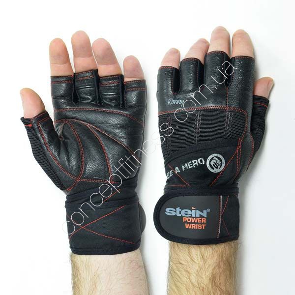 Рукавички Stein Ronny GPW-2066 з подвійною фіксацією, вона включає ремінь-обмотку і застібку-фіксатор навколо зап'ястя, застібаються рукавички на тильній стороні. Модель створена для занять фітнесом і бодібілдингом, блокує ковзання руки по спортивних снарядів, забезпечують чіпкість і надійність хвата, особливо актуально для любителів гантелей і штанг. Зовнішня обробка дасть можливість простіривают рукавички руками або в пральній машинці. Рукавички Штейн Ронні GPW-2066 виконані з якісної, еластичною і натуральної 100% шкіри, а також спандекса, посередині перебувати ущільнювач. Модель рукавичок чорного кольору, в наявність кілька розмірів під замовлення, рукавички анатомічної форми, без пальців, на них нанесений логотип відомого спортивного бренду. Рукавички блокують ймовірність розтягування і розриву зв'язок під час підняття важких снарядів, модель однаково підійде жінкам і чоловікам незалежно від рівня підготовки.