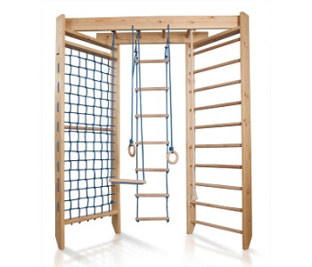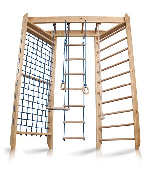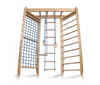 Спортстенка Спортбебі Спорт 4-240 комплектується міцним канатом, шведською стінкою, гладіаторських сіткою, піратської сходами, вона займе малюків на довгий час, а батьки встигнуть вирішити свої проблеми. Комплекс виготовляється з сосни, поперечини з якісного і міцного бука, витримує навантаження в 130 кг, що дозволяє підтримувати фізичну форму також взрослим.