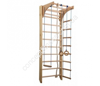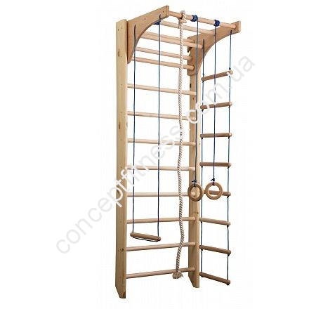 Дитячий спортивний куточок Спортбебі Комбі 2-240 оснащений трапецією, мотузяною драбиною, турником, шведською стінкою, кільцями, канатом і комплектом для кріплення. Вага моделі 25 кг, витримує 80 кг навантаження, виконаний з легкого, міцного і якісного деревного матеріалу ndash; сосни і бука. Модель однаково підійде дорослим і дітям, наявність спортивних комплексів чудово завершать інтер'єр будь-якої кімнати, вкажуть на спортивне захоплення сім'ї.