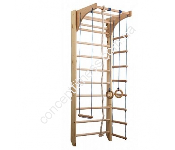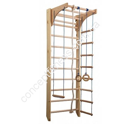 Спортивний куточок Sportbaby Комбі 2-220 є найбюджетнішій, оптимальною моделлю для фізичного розвитку, він оснащений турніком-комбі, шведською стінкою, канатом, кільцями, піратської сходами. Загальна вага тренажера 27 кг, здатний витримати 120 кг навантаження, гарантія на виріб близько 12 місяців, він розвиває суглоби, основні групи м'язів, збільшує спритність, координацію і піднімає імунітет. Куточок кольору натурального дерева, підійде не тільки малюкам, але і батькам, покритий універсальним антисептиком щоб уникнути подразнень і алергічних реакцій.