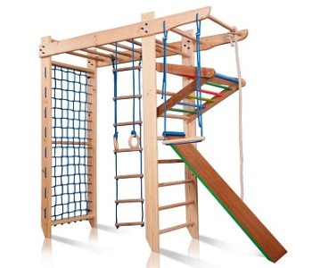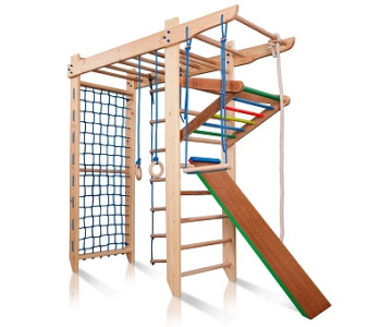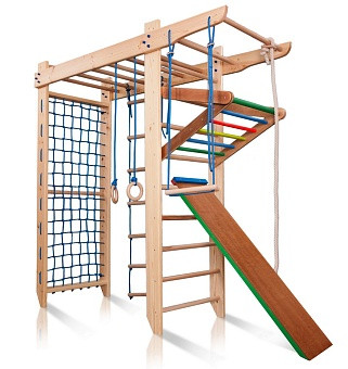 Спортивний куточок Спортбебі Спартак-220 складається з гладкої дошки для прокачування м'язів черевного преса, сіткою для гладіаторських змагань, рукоходом, турніком знімного типу, шведською стінкою, турніком для підтягування, кільцями, міцним канатом, піратської сходами, трапецією і комплектом для кріплення деталей. Модель він розвиває суглоби, основні групи м'язів, збільшує спритність, координацію і піднімає імунітет. Куточок є бездоганним місцем проведення дозвілля дорослих і дітей. Дерев'яні деталі покриті універсальним антисептиком, захищає від алергії і подразнень.