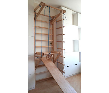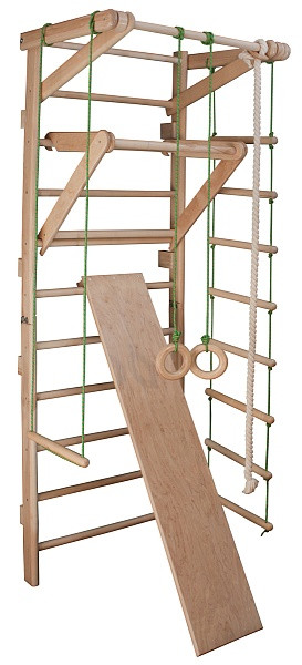 Спортивний куточок Спортбебі Растишка 3-230 фіксується до стінки, в якості матеріалу виступає легкий, міцний, надійний і безвідмовний бук. Комплекс оригінальної розмальовки, кольору натурального дерева, а завдяки своїм габаритам з легкістю транспортується в багажнику легкового автомобіля. Модель комплектується всім необхідним, а саме знімним турником, гладкою дошкою для прокачування черевного преса, міцної та якісної шведською стінкою, турніком для підтягування, поліпропіленовим канатом, кільцями для гімнастичних вправ, трапецією, піратської сходами, а також комплектом крепежа.
