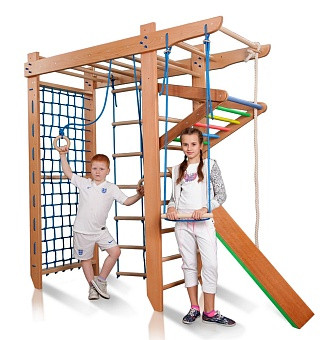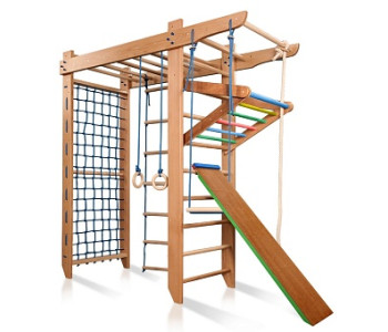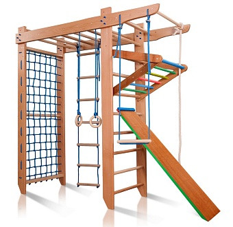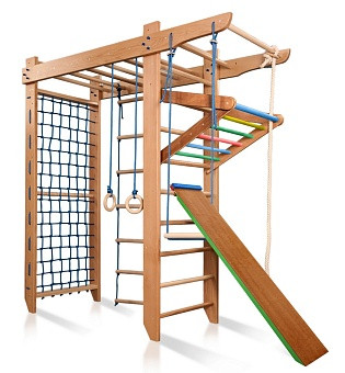Спортивний куточок з рукоходом Sportbaby Гімнаст-220 виділяється багатофункціональністю, міцністю і високою якістю, він з великою радістю використовується Непосєдов. Щоденні вправи на комплексі сприяють поліпшенню координації, зміцнення основних груп м'язів, суглобів, витривалості, спритності, формуванню постави і підняття імунітету. В комплекті додатково передбачені: дошка для черевного преса, поліпропіленовий канат, шведська стінка з турніком для підтягування, піратська сходи, кільця для гімнастичних вправ, трапеція і комплект для кріплення до стінки. Модель витримує 130 кг навантаження, дозволяючи повернути фізичну форму і рельєфність м'язів не тільки дітей, а й дорослих любителів фізичних вправ.