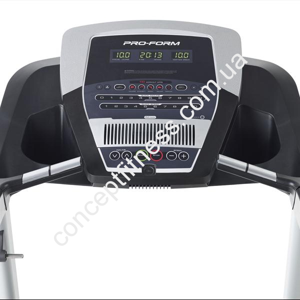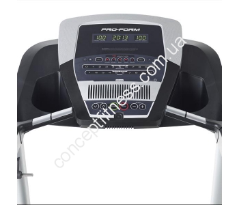 Бігова доріжка ProForm Endurance S9 PETL99714 оснащена компактним і дуже зручним дисплеєм, на якому відображаються всі свідчення тренувань користувача. В управлінні консоль тренажера проста і зрозуміла навіть для новачка. У рукояті доріжки були вбудовані невеликі датчики сенсорного типу, які дозволяють вимірювати пульс користувача під час тренувань. Бігова доріжка проформи Ендуранс С9 ПЕТЛ99714 володіє не тільки компактною і стійкою конструкцією, але і сучасним дизайном, який не залишить байдужим жодного користувача. У доріжки є власники, які можна використовувати в якості підставки під пляшку з водою, або ж для гаджетів. Для того, щоб забезпечити безпеку, на полотно доріжки було нанесено речовина проти ковзання.