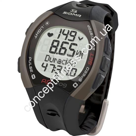 Пульсометр RC 12.09 Sigma був розроблений під потреби амбітних бігунів, він виводить досить точні результати не гірше ЕКГ. Пульсометр використовується під час дайвінгу або тренувань в басейні, з ним можна занурюватися на глибину до 30 метрів. Модель з 3-ма пульсовими зонами, а ергономічний дизайн не залишить нікого байдужим. Корпус виконаний з міцного, надійного і безвідмовного матеріалу, а м'який, комфортний силіконовий ремінець щільно притискається до руки, не викликає запотівання і не ковзає при фізичних вправах. Всього близько 12 різних опцій, включаючи витрату калорій, розрахунок зон інтенсивності, збереження останніх кілька тренувань та інше.