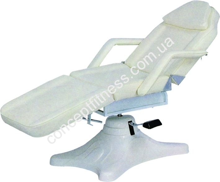 Кушетка гідравлічна ASF CH-234 представлена в бежевому кольорі, гарантія на косметологічне обладнання до 12 місяців. Передбачено 3 секції, які змінюють кути нахилу, модель оббита якісної ПВХ-шкірою, яка блокує потрапляння масла, води і не пропускає піт, це дуже актуально під час проведення різних косметологічних маніпуляцій. Наповнювачем є пінополіуретан, а підстава кушетки виконано з металевого сплаву.